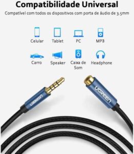 UGREEN 3.5mm Male to 3.5mm Female Extension Braid 2m (Black)