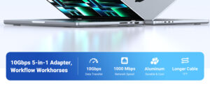 - Supports high-speed data transfer for USB drives, SSDs, and accessories