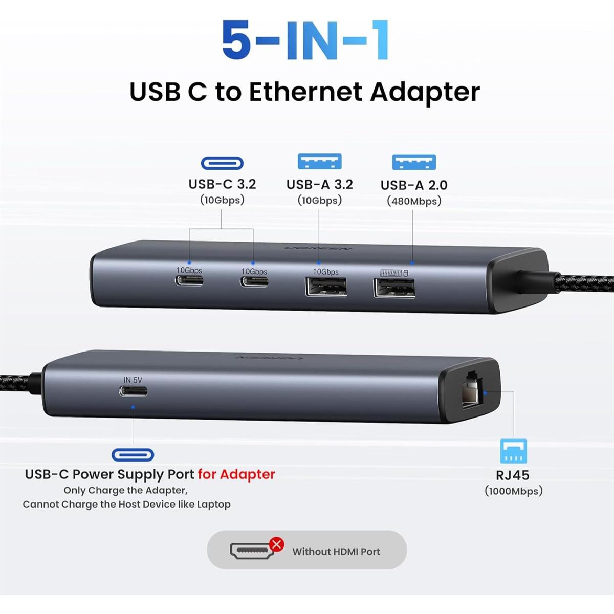 Be the first to review “Ugreen USB-C to Ethernet Adapter, 10Gbps Data Ports 5 in 1 USB C Hub Ethernet with 2* USB-C 3.2, USB-A 3.2/2.0, Gigabit RJ45 for Laptop, Type C” Cancel reply